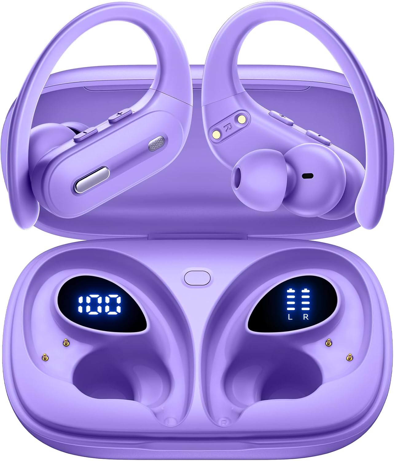 - 【Designed for Sports & IPX7 Waterproof】Boasting a comfortable, ergonomic design with flexible, secure-fit ear hooks, these wireless earphones with earhooks snugly and securely fit into your ears, even during vigorous exercise, preventing any unwelcome slips. With the inclusion of four pairs of rubber ear tips in various sizes (XS, S, M, L), you can enjoy a fatigue-free and painless listening experience, even if you have smaller ears. IPX7 waterproof rating guarantees protection against water droplets and sweat, making these wireless sports earbuds the perfect choice for workouts, running, and gym sessions.