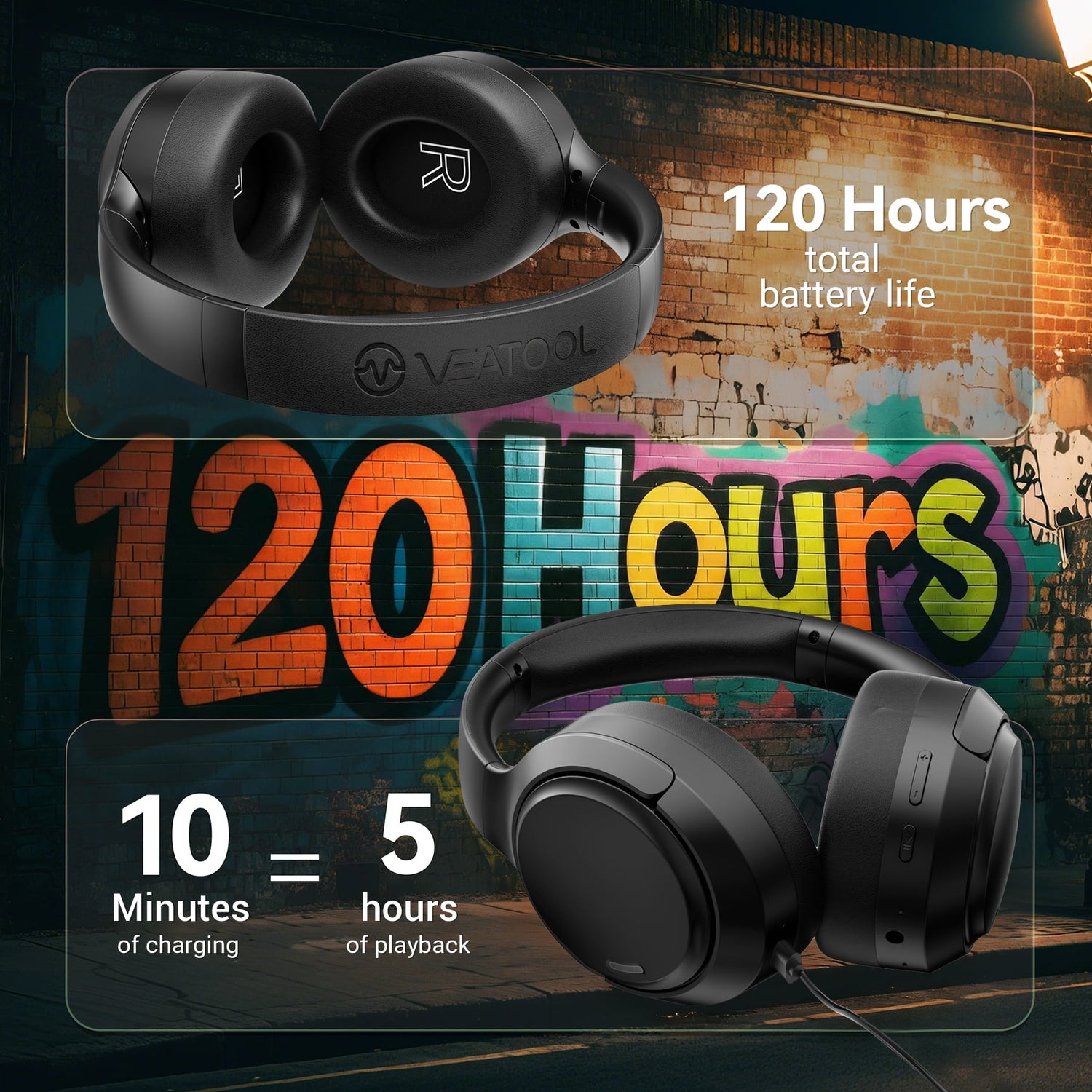 - 【Uninterrupted Battery Life & Wired Mode】 : Never run out of battery with up to 120 hours of continuous playback on a single charge. The over ear headphones deliver near-zero latency for lossless audio quality. When the battery runs low, just 10 minutes of fast charging gives you 5 hours of playback. AUX mode eliminates bluetooth limitations, for users who prefer a wired experience. Ideal for extended work and entertainment sessions.