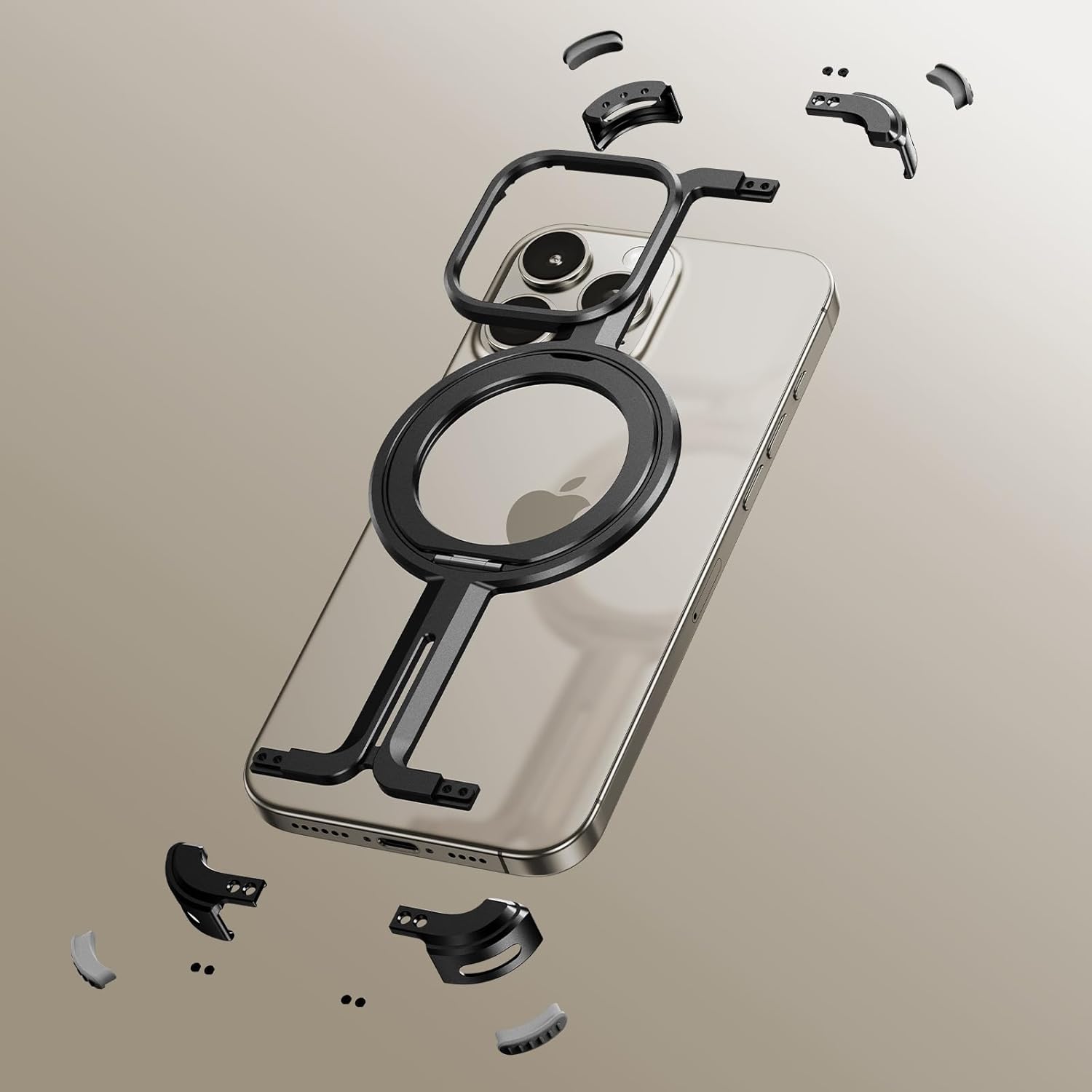 VEAT00L Frameless Magnetic Case for iPhone 16 Pro Max,Metal Kickstand 360° Rotatable Stand for MagSafe,Aluminum Minimalist Slim Bumper Shockproof Protective Cover for 16 Pro Max with Ring Holder