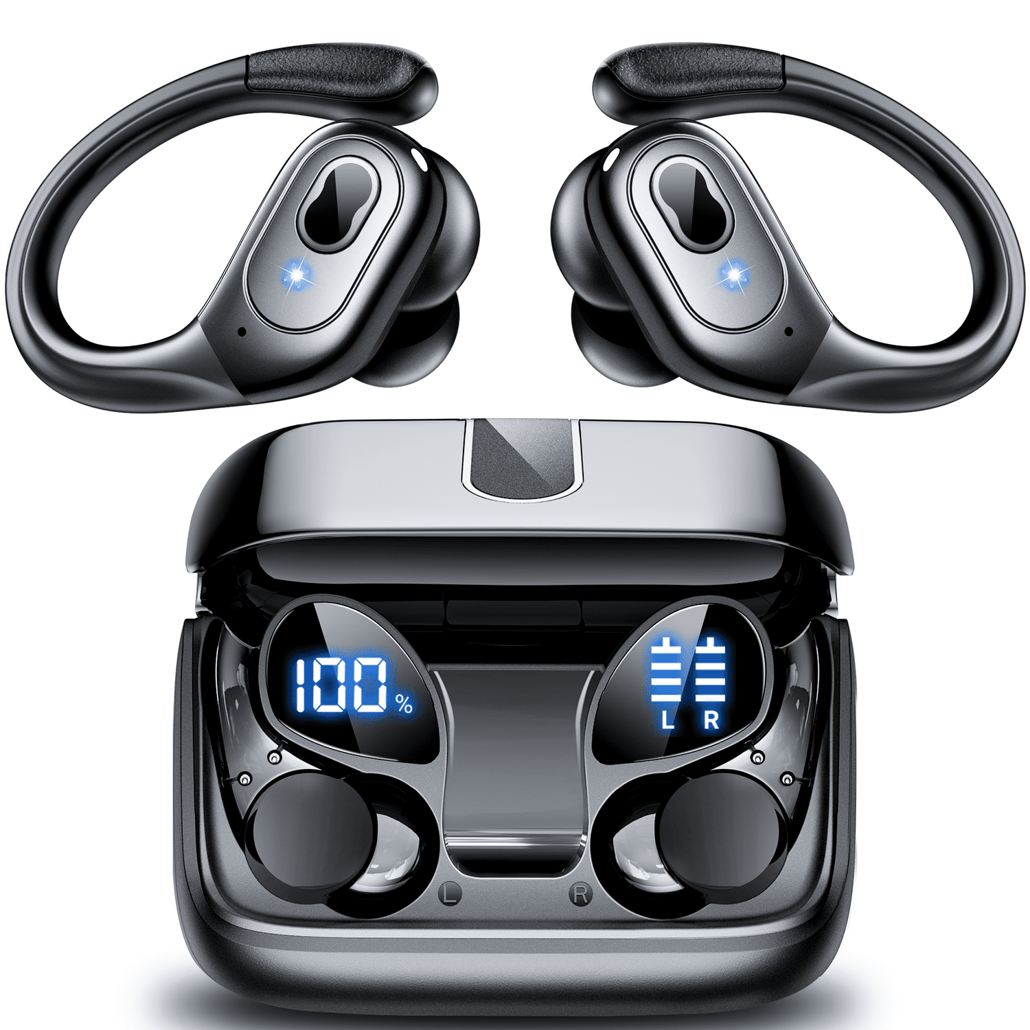 VEAT00L Headphones Wireless Earbuds Sport, Bluetooth 5.3 Over Ear Buds Stereo Deep Bass Headset with Earhooks, 80H Dual LED Display Wireless Earphones with ENC Noise Canceling Mic,for Running/Workout