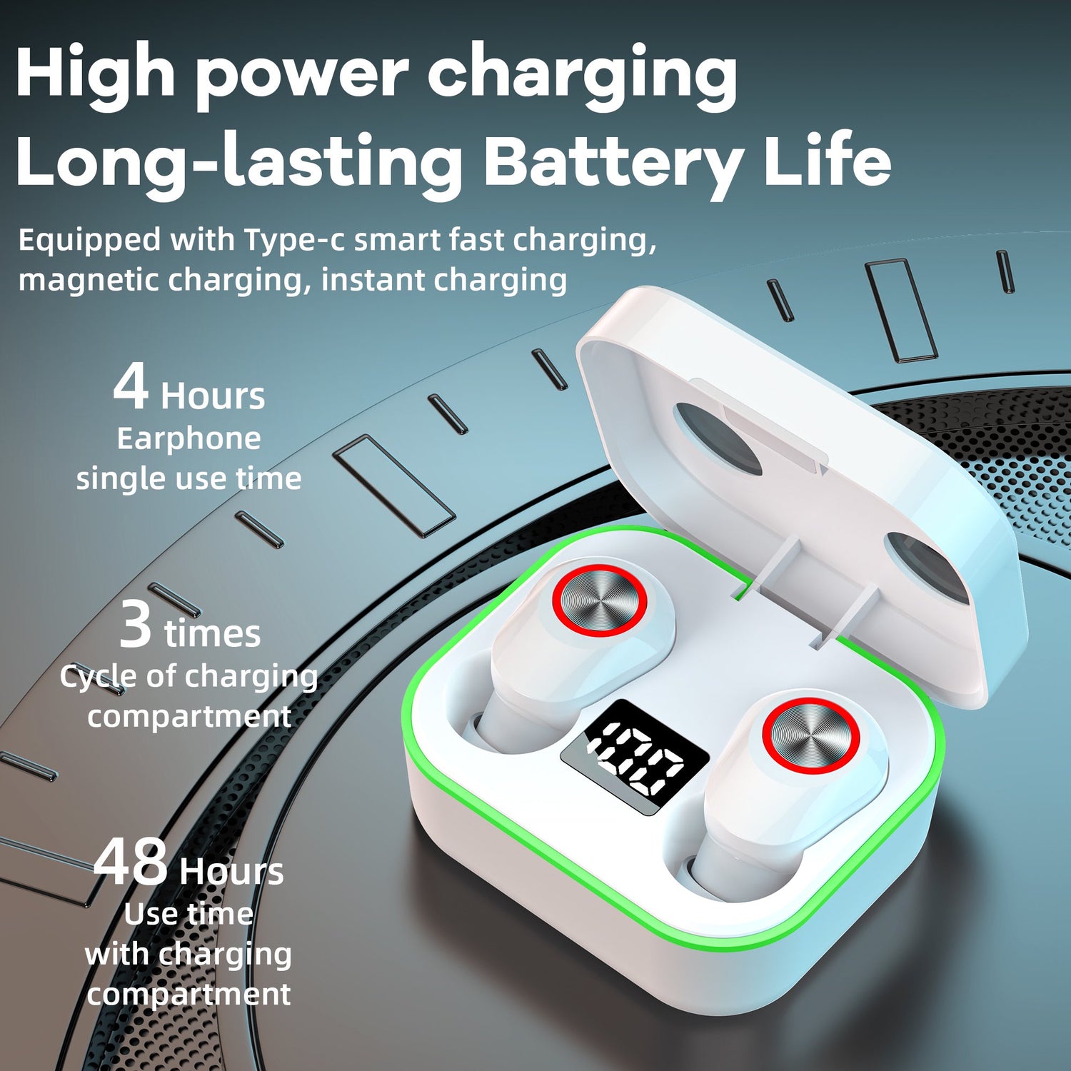 - Much More Than a Case: On a single charge, the earbuds play for up to six hours long enough to power you through almost any workout. And when you are done, place them in the charging case to recharge. It will keep them protected, and provides three additional full charges (or up to 48 hours of battery life) to keep them ready to go again.<br>
