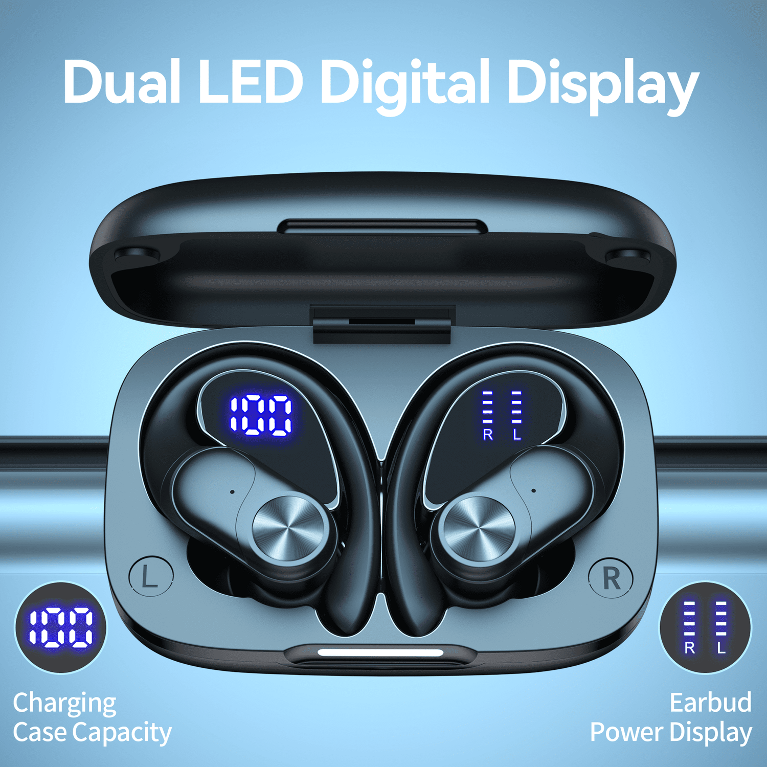 VEAT00L V6 Bluetooth Headphones Wireless Earbuds 88Hrs Playback Sport Ear Buds with Earhook Digital Display Charging Case IPX7 Waterproof Earbud Deep Bass Running Earphones for iOS Android Cellphone