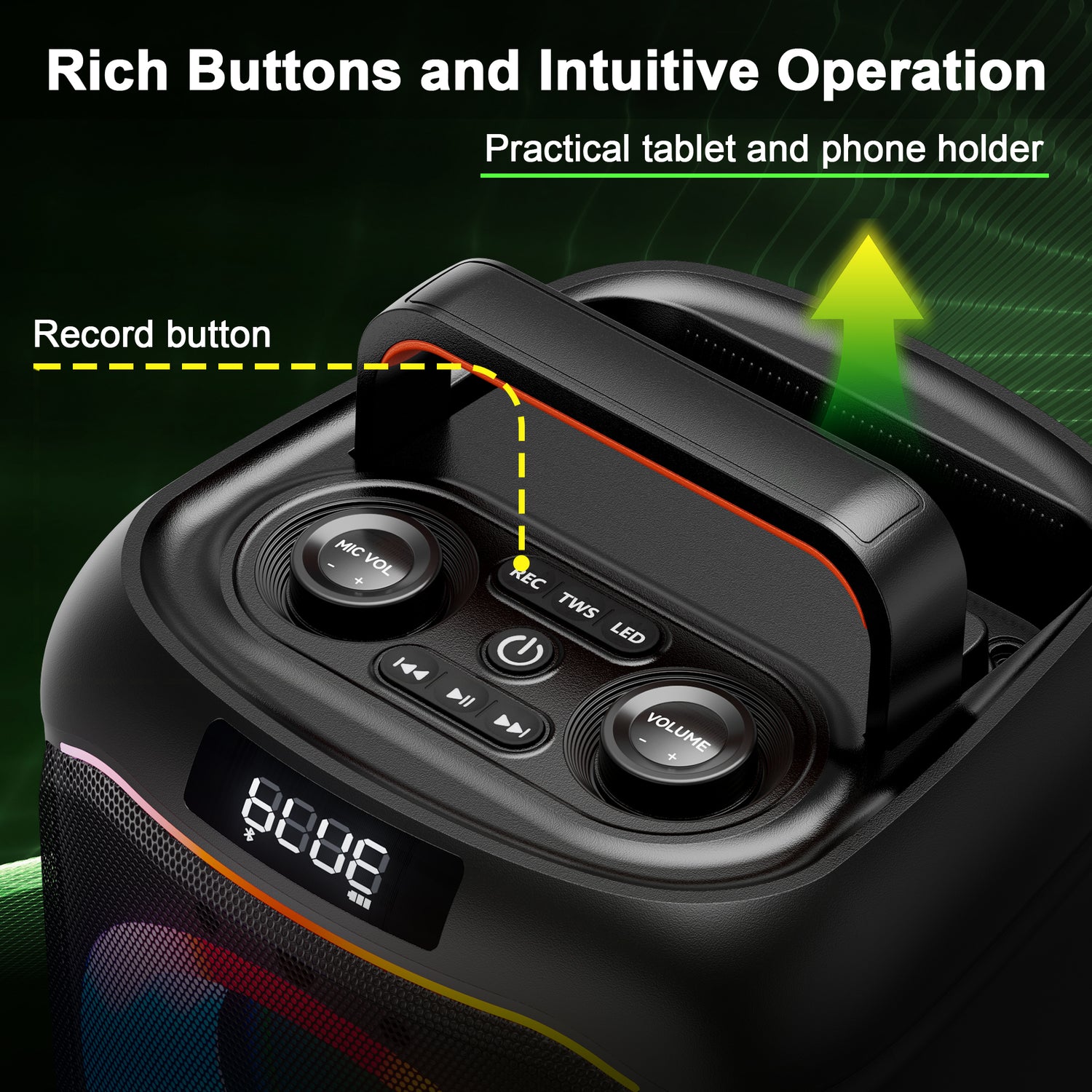 VEATOOL Karaoke Machine, Home Karaoke System with 2 Microphone, Bluetooth Speaker with Party Light, ET107