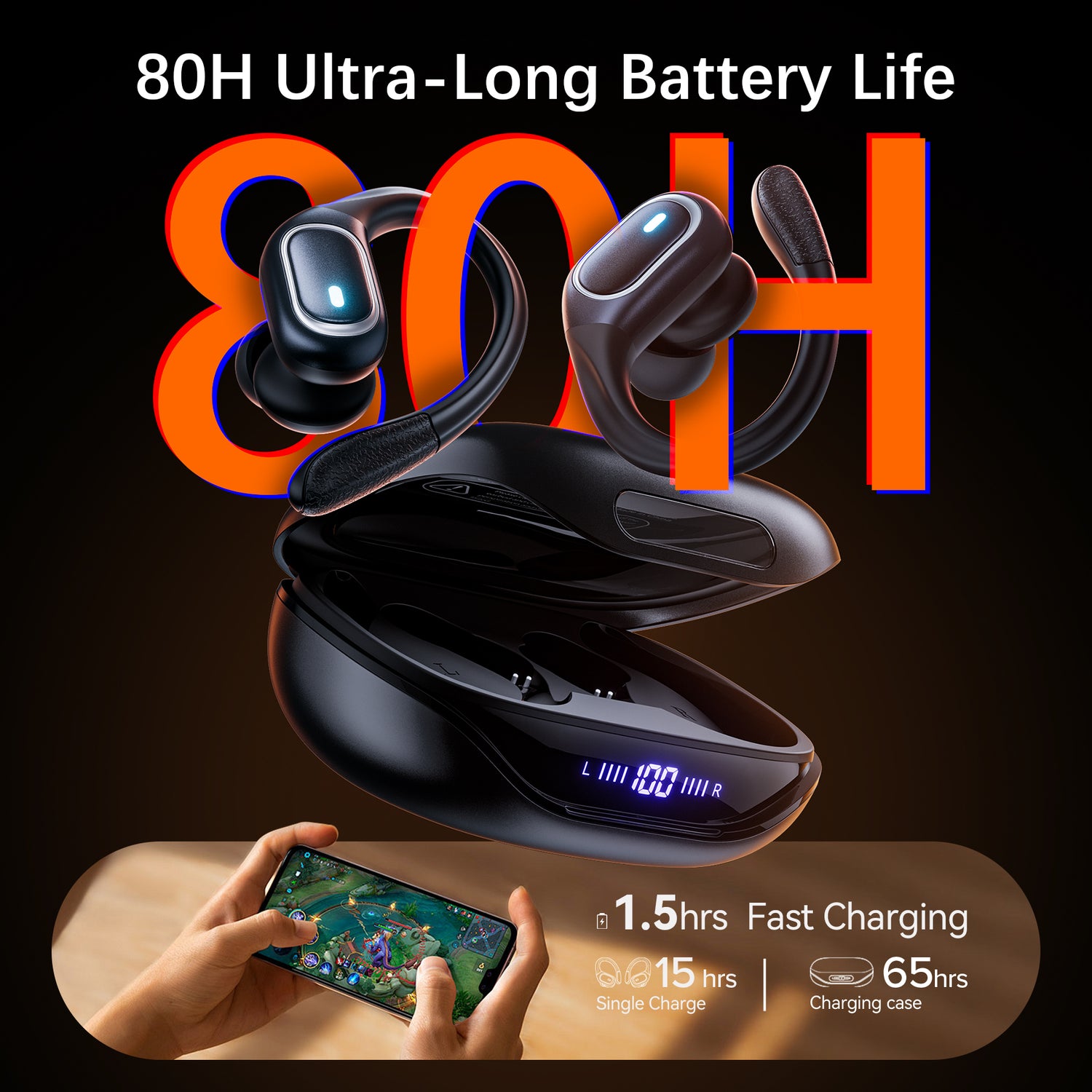 - 【Extended 80 Hours Playback】- Our T16 wireless earbuds boast a 70mAh battery, allowing up to 8 hours for continuous use (at 50%-60% volume) on a single charge. With the 600mAh large-capacity charging case, you can enjoy a total playtime of approximately 90 hours, you can keep grooving to your favorite tunes all day long. With an external digital LED display on the charging station, you can easily keep track of the battery level without opening the case and plan your charging accordingly
